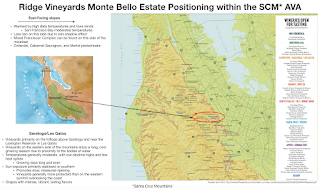 The Orlando Friends Tasting Group will be tasting selected vintages of Ridge Vineyards Monte Bello Cabernet Sauvignon this upcoming weekend. I have previously described the Monte Bello home AVA (Santa Cruz Mountains) and will continue that enlightenment herein with a discussion of the estate's positioning within that space.